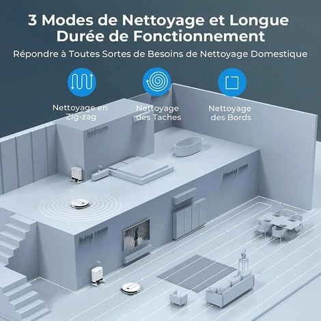 - 【4 Modes de Nettoyage pour Différents Besoins de Nettoyage】Il prend en charge 4 modes de nettoyage, notamment le nettoyage automatique, le nettoyage des taches, le nettoyage des bords et le nettoyage aléatoire. Le mode automatique couvre tout l’environnement avec une trajectoire de nettoyage en « zigzag », tandis que le nettoyage des taches, des bords et aléatoire effectue un nettoyage plus détaillé. Les différents modes de nettoyage sont adaptés à différents sols et à différents types de saleté