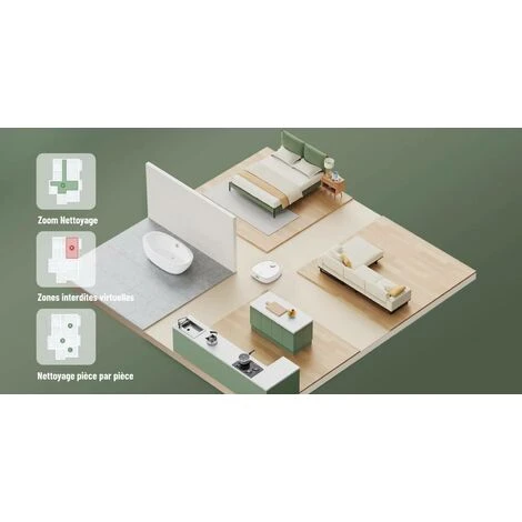 Choisissez parmi 3 modes via l’application – aspiration, nettoyage et nettoyage tout-en-un – pour créer la session de nettoyage idéale. Balayez les tapis, nettoyez la salle de bain ou passez l’aspirateur sur les sols durs.