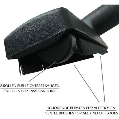 avec deux roues rouleaux pour une manipulation aisée et une aspiration agréable | Poils spéciaux en nylon / cheveux naturels | Idéal aussi pour les tapis | tete tête brossé nettoyage Aspirante