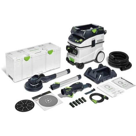 Ponceuse à bras Planex avec lumière LED pour des murs et plafonds parfaits. Permet de mieux visualiser les aspérités pendant le ponçage. Grâce à son mouvement de ponçage excentrique, vous obtiendrez une excellente qualité de surface sans besoin d’effectuer des retouches. Aspiration régulable et longueur de travail variable. Le moteur EC est extrêmement robuste, d’une grande longévité et sans entretienCaractéristiques techniquesPuissance absorbée : 400 WVitesse de rotation (excentrique) : 5 000 – 8 500 min⁻¹Course de ponçage : 4,00 mmDiamètre plateau de ponçage interchangeable : 220,00 mmDiamètre abrasif : 225,00 mmLongueur : 1,2/1,65 mDiamètre raccord d’aspiration : 36/27 mmPoids (longueur 1,20 m) : 4,00 kgPoids (longueur 1,65 m) : 4,70 kgType d’alimentation : SecteurContenuAspirateur CTL 36 E AC PLANEXCâble secteur plug it (4m)Clip de tuyau SC-LHS 2 225Fixation velcro KV-215 (pack de 5)Pack de 5 Granat P180Plateau de ponçage diamètre 220mm avec pad d’interfaceRallonge VL-LHS 2 225Systainer SYS3 XXL 337