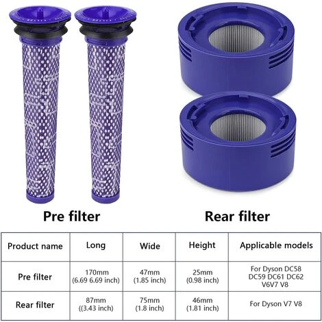 LRISHOM Pre-Filtre, Accessoires Pour Aspirateur Dyson V6 V7 V8 Dc59