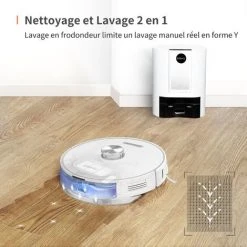 | Fonctions spéciales | – Aspiration et lavage en un passage(2 en 1 réservoir à eau et bac à poussière vendu séparément); – Compatible avec Alexa et Google Home; – Programmable 7 jours sur 7; – Nettoyage automatique; – Détection du tapis; – Détection du vide. |