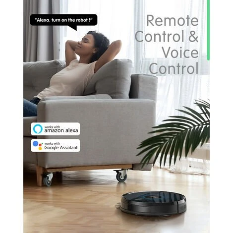 Contrôle multifonction – Avec l’aide d’une application robot intelligente compatible avec Siri/Alexa/Google Assistant, vous pouvez facilement demander au robot aspirateur ZOOZEE de nettoyer la pièce où que vous soyez